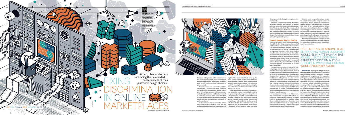 Harvard Business Review - Feature Spread and Follow for the article 'Fixing Discrimination in Online Marketplaces'