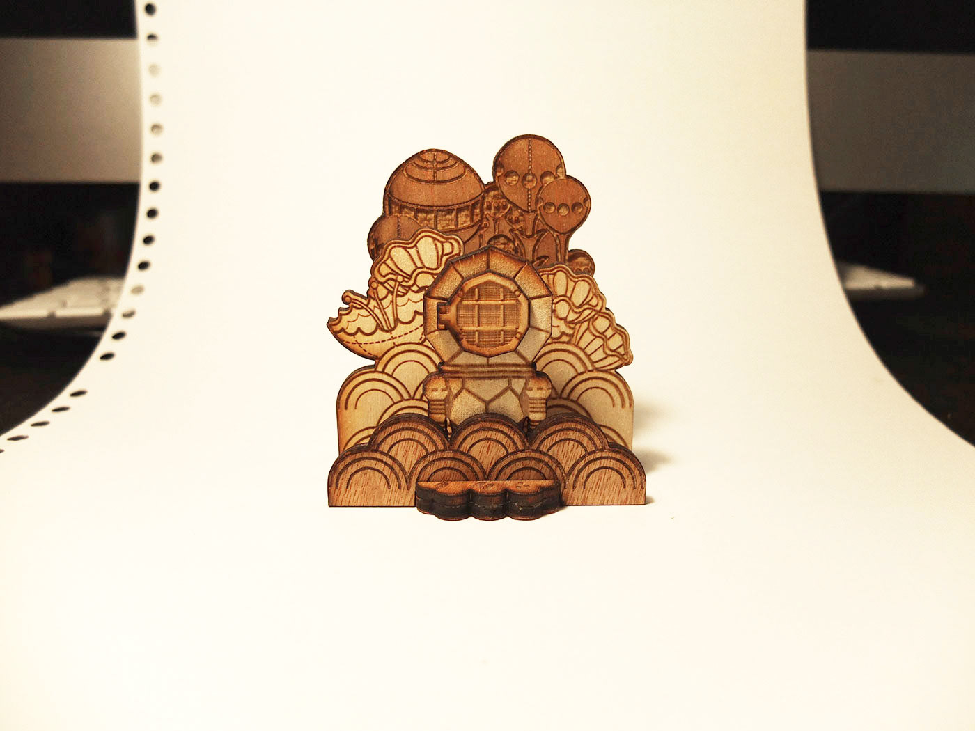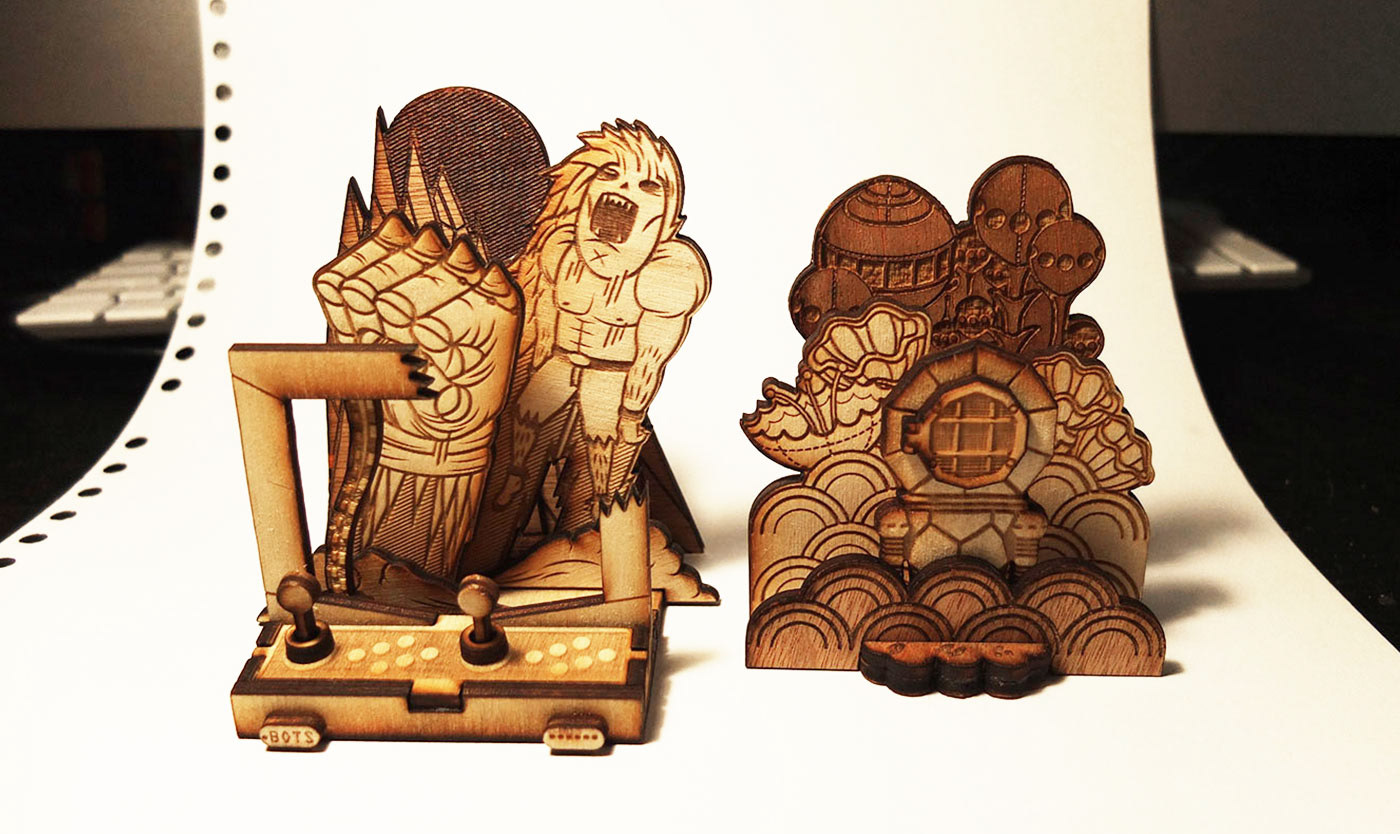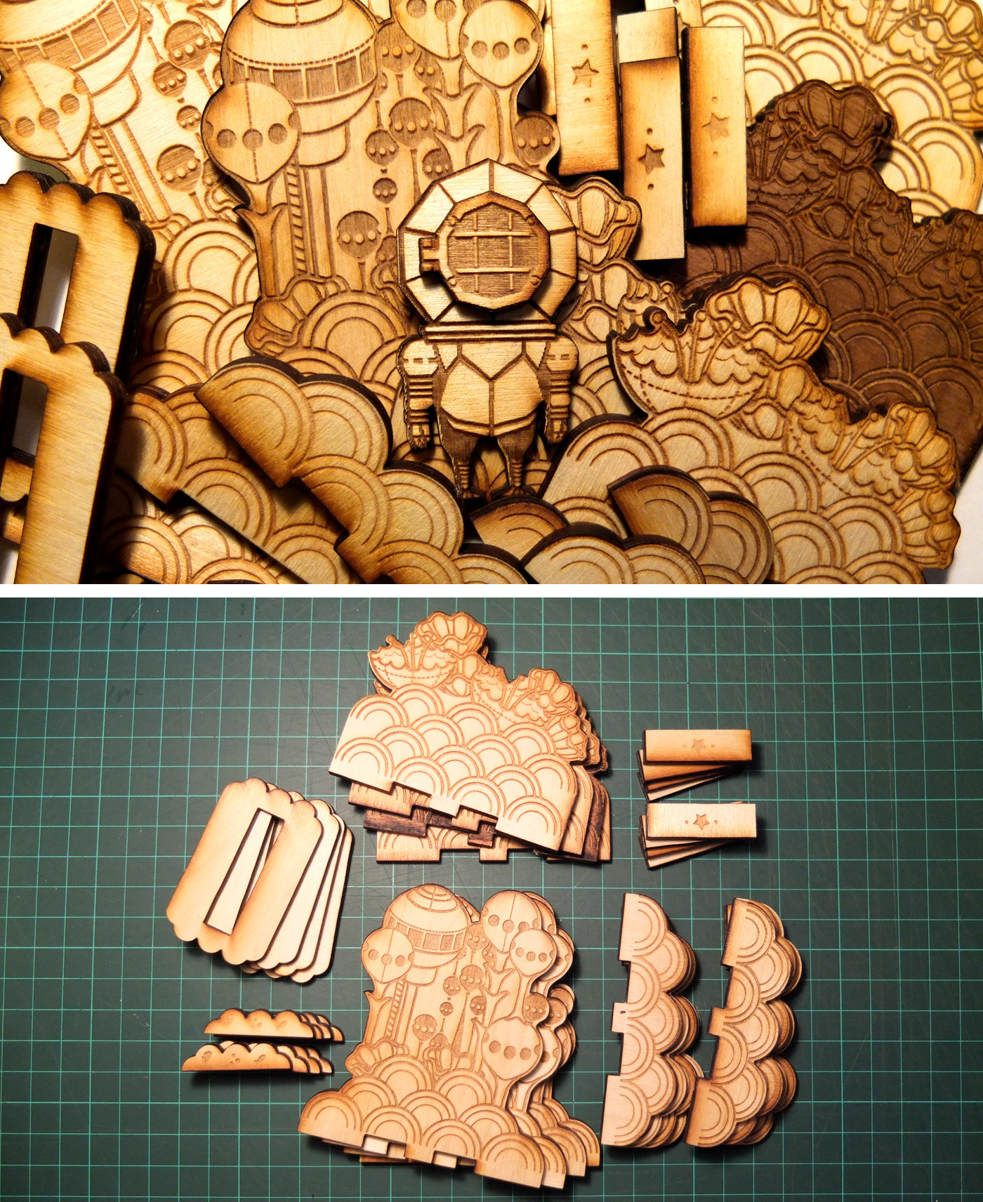 Laser-cut plywood toys, products and sculptural experiments. Creating fun layered imagery with some depth and movement.